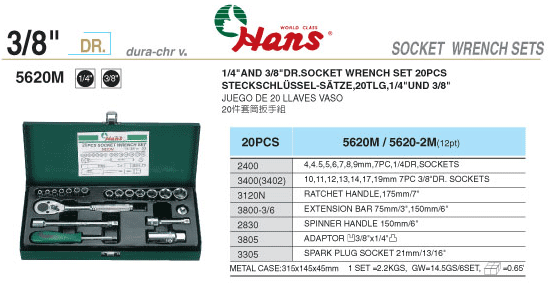 產品型號.Model Number:NO:5620M.5620-2M(12pt) *規格.SIZE in DR.:1/4”.3/8” *規格.SIZE in PCs:20件/PCs.